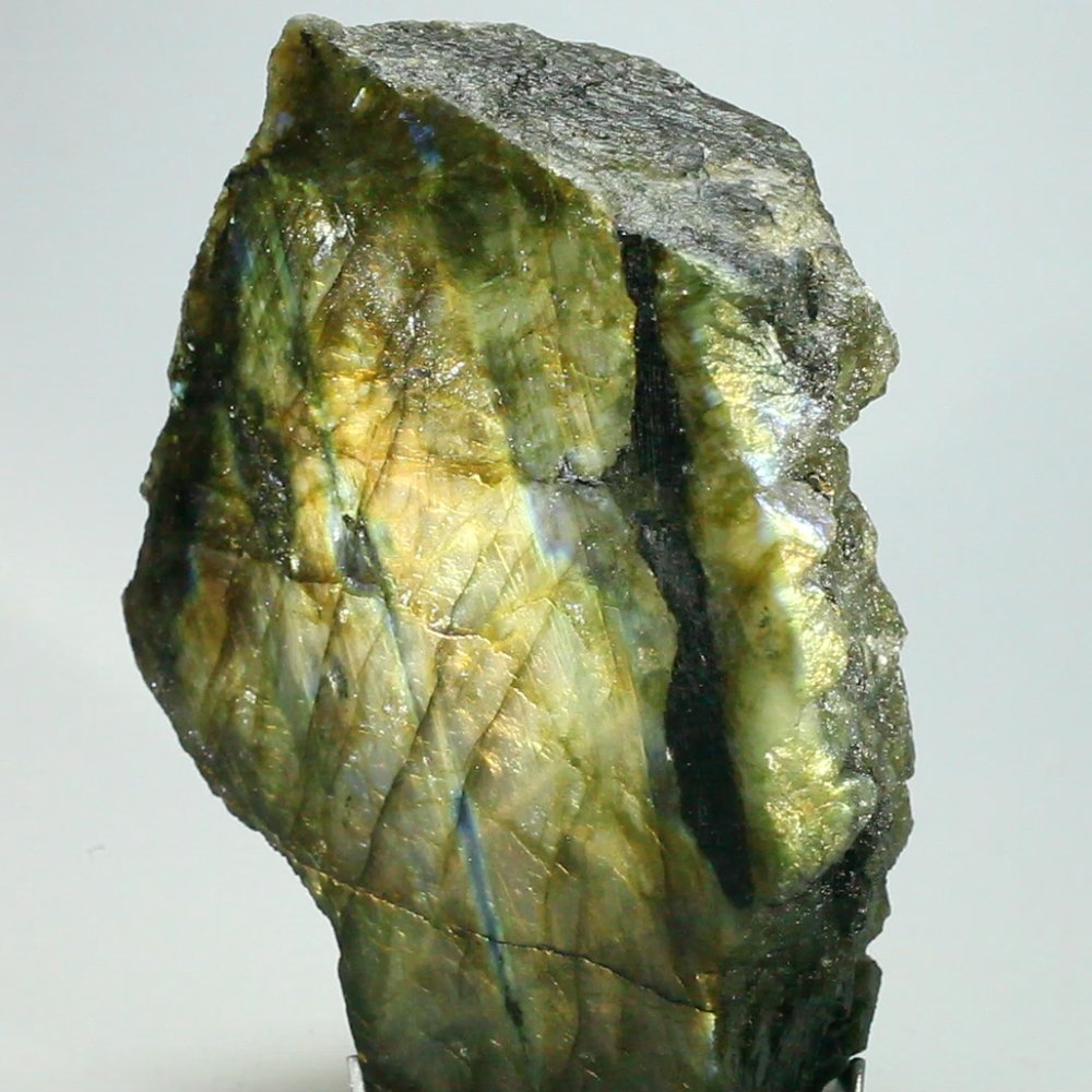 This iridescent Labradorite stone, which has been part polished, displays spectacular flashes of moving colours in blue, red, gold and bronze green.