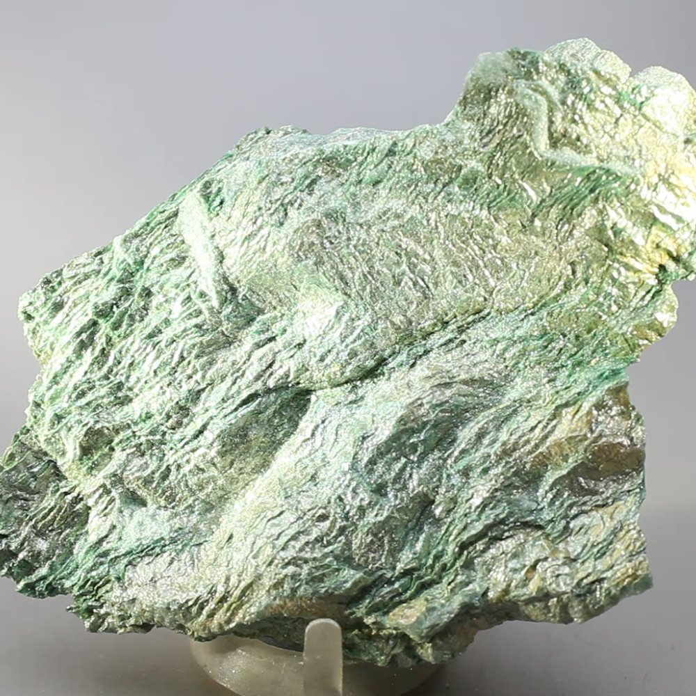 This Fuchsite specimen from Brazil gets its wonderful green colour from the chromium it contains. The colour ranges from a pale, silvery shade to a deeper green that lifts and revives the spirits.