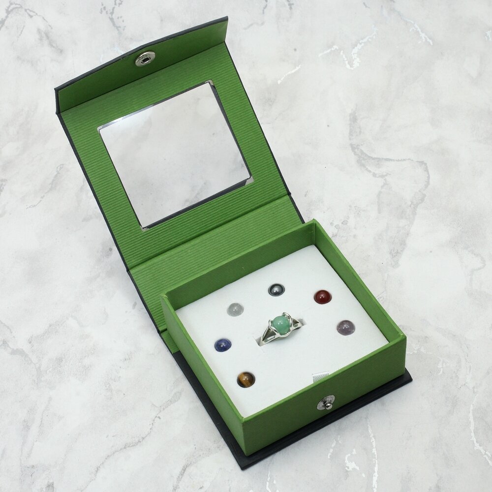 This stylish set includes an adjustable ring with a removable green aventurine sphere. You can then swap the sphere for any of the six other crystals and get a different look every day.