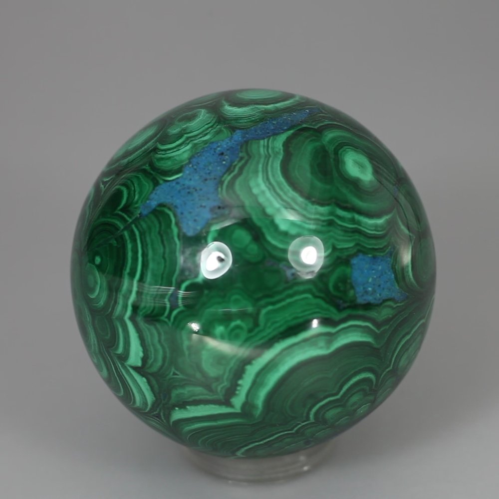 This bright and eye-catching Chrysocolla & Malachite Crystal Sphere displays a range of beautiful green and turquoise shades that are really attractive.
