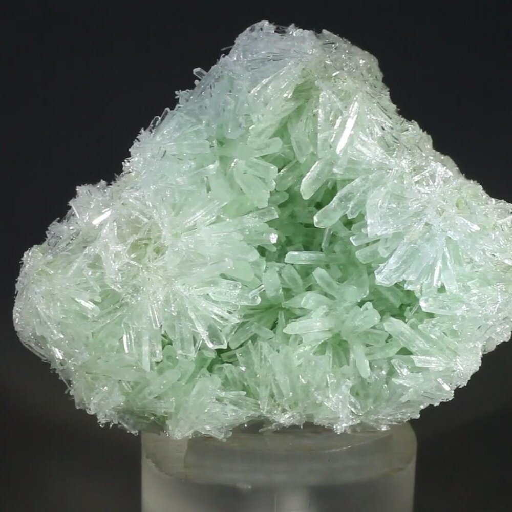 This attractive and unusual Green Gypsum Crystal Cluster originates from South Australia.This specimen exhibits sprays of fragile needle-like pale green and white crystals - the green colouring being due to the presence of copper ions.