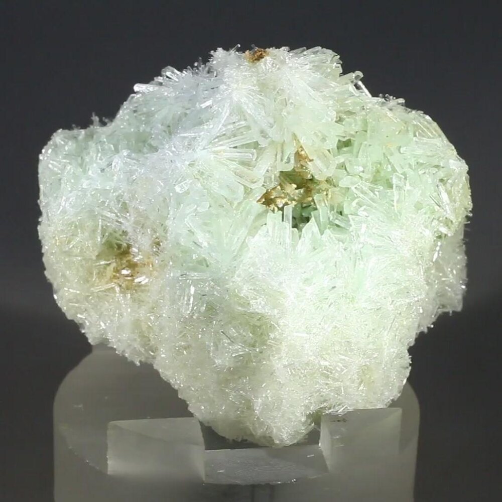 This attractive and unusual Green Gypsum Crystal Cluster originates from South Australia.This specimen exhibits sprays of fragile needle-like pale green and white crystals - the green colouring being due to the presence of copper ions.