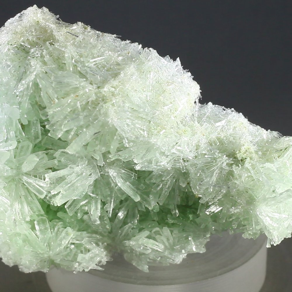 This attractive and unusual Green Gypsum Crystal Cluster originates from South Australia.This specimen exhibits sprays of fragile needle-like pale green and white crystals - the green colouring being due to the presence of copper ions.