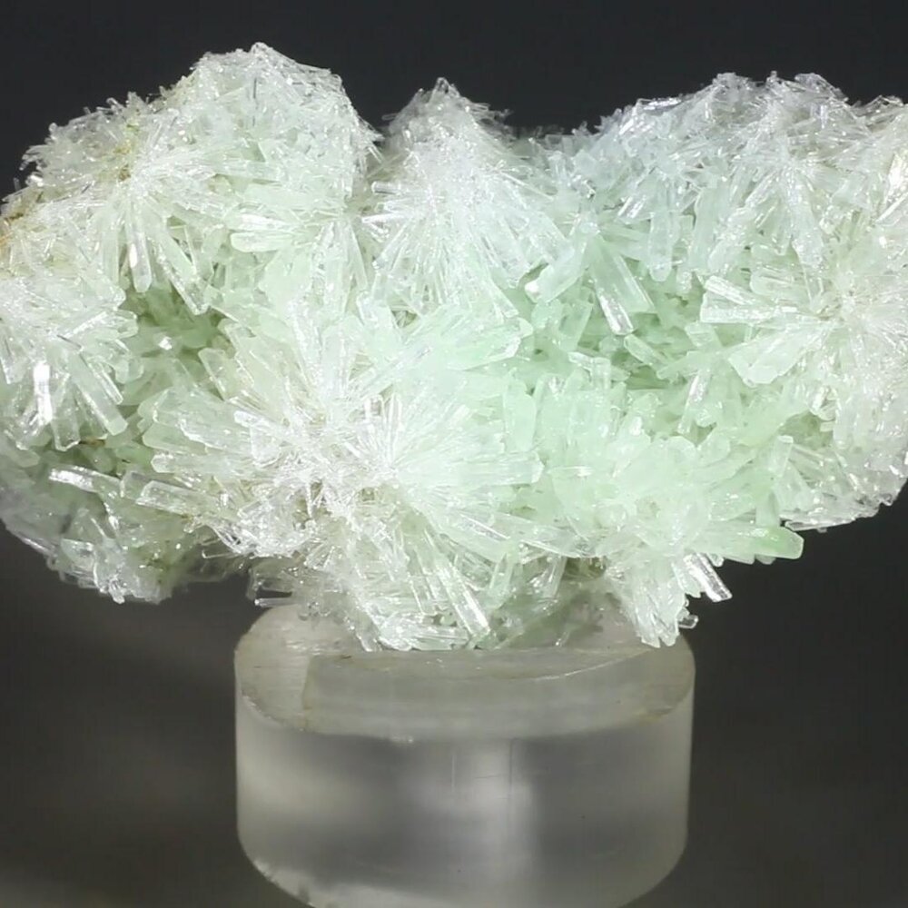 This attractive and unusual Green Gypsum Crystal Cluster originates from South Australia.This specimen exhibits sprays of fragile needle-like pale green and white crystals - the green colouring being due to the presence of copper ions.