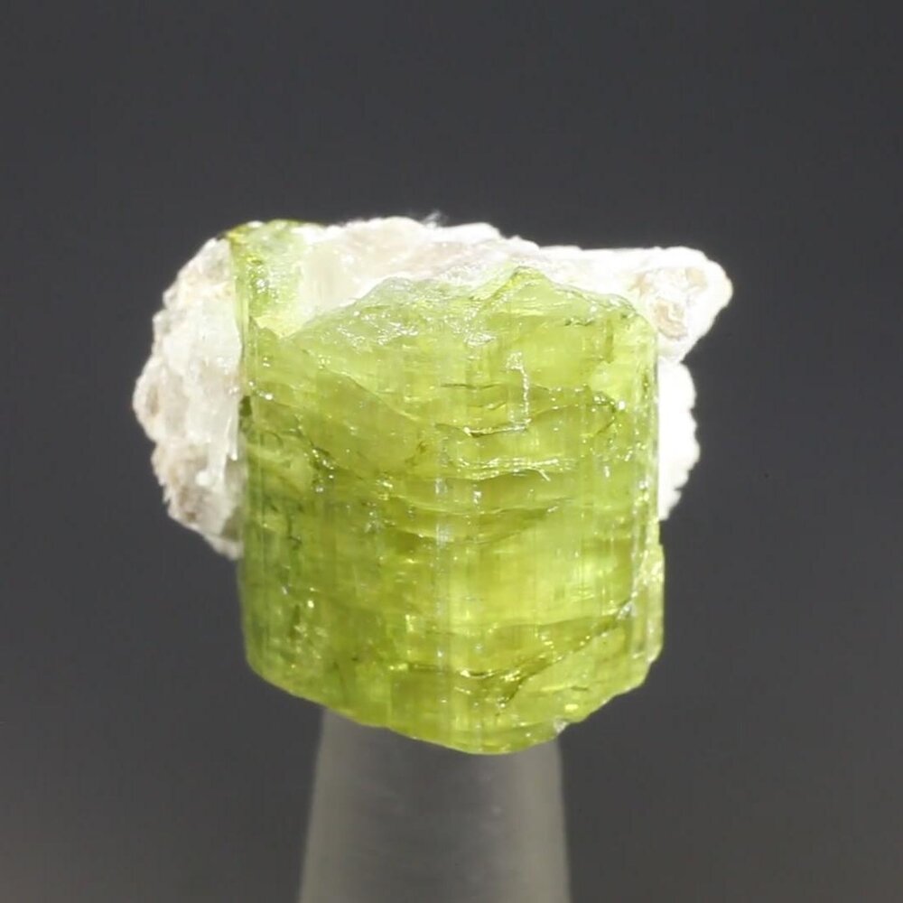 Increasingly difficult to source, an attractive and lustrous Green Tourmaline crystal from Brazil.
