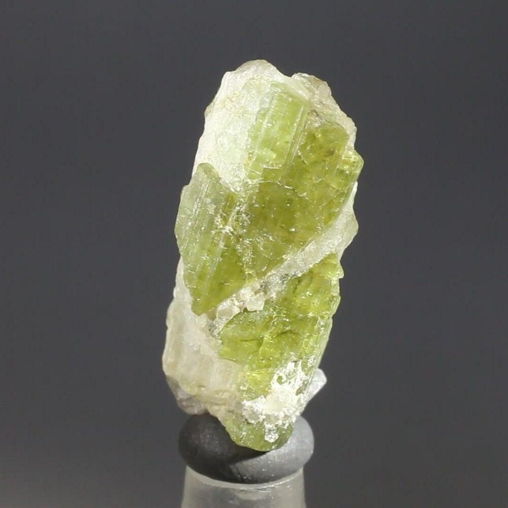 Increasingly difficult to source, an attractive and lustrous Green Tourmaline crystal from Brazil.