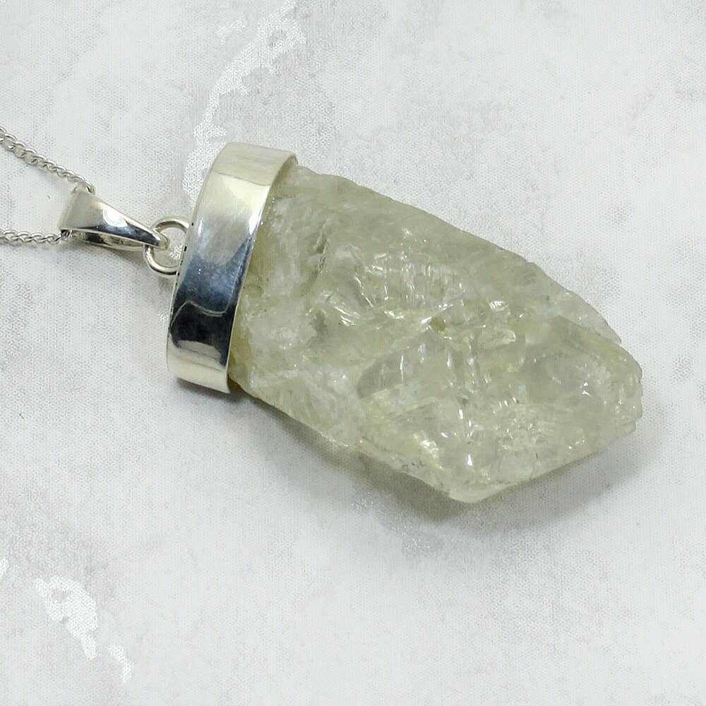 This unique Hiddenite Healing Crystal 925 Silver Pendant is set in a 925 sterling silver bail.
