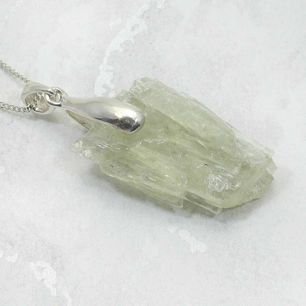 This unique Hiddenite Healing Crystal 925 Silver Pendant is set in a 925 sterling silver bail.