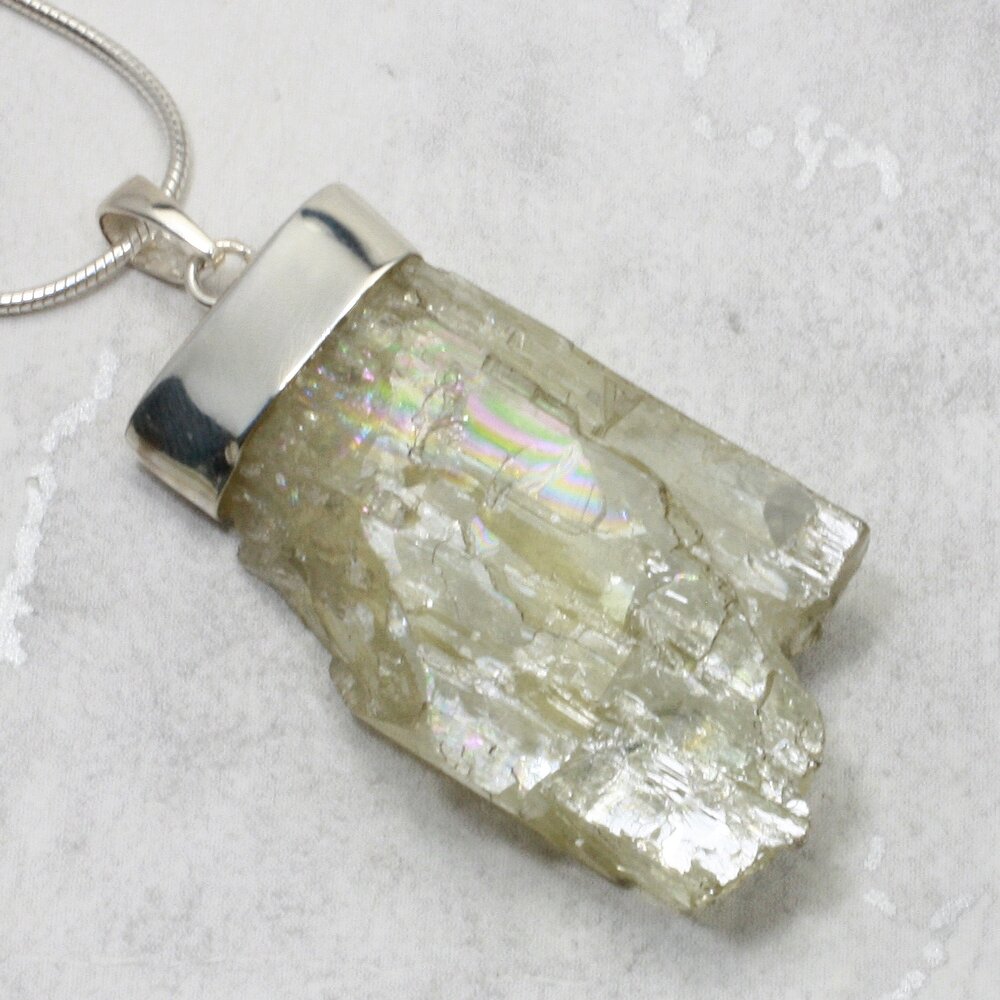 This unique Hiddenite Healing Crystal 925 Silver Pendant is set in a 925 sterling silver bail.