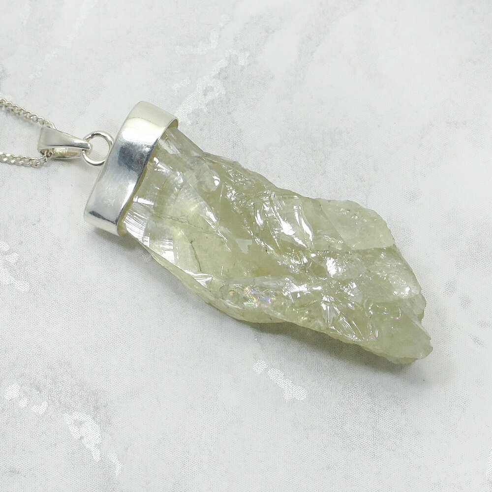 This unique Hiddenite Healing Crystal 925 Silver Pendant is set in a 925 sterling silver bail.