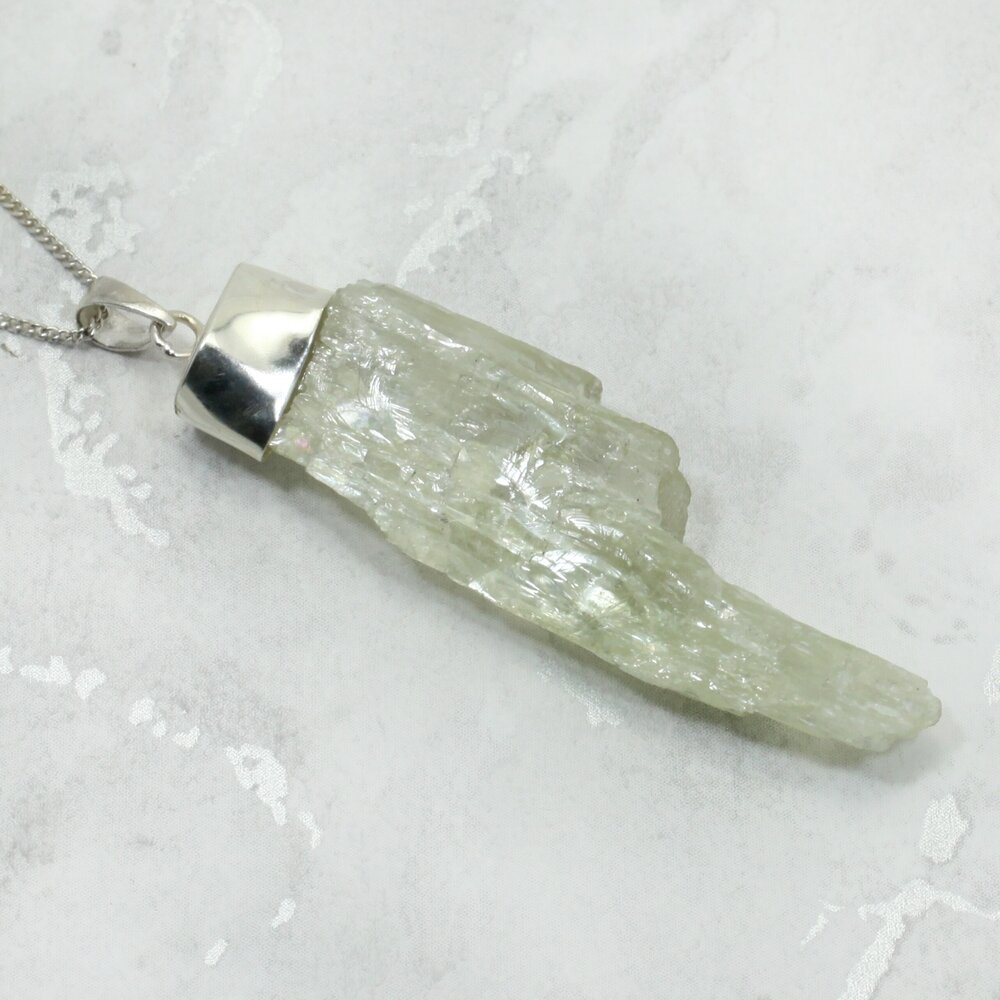 This unique Hiddenite Healing Crystal 925 Silver Pendant is set in a 925 sterling silver bail.