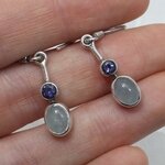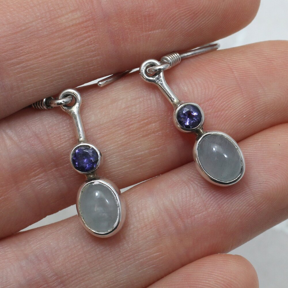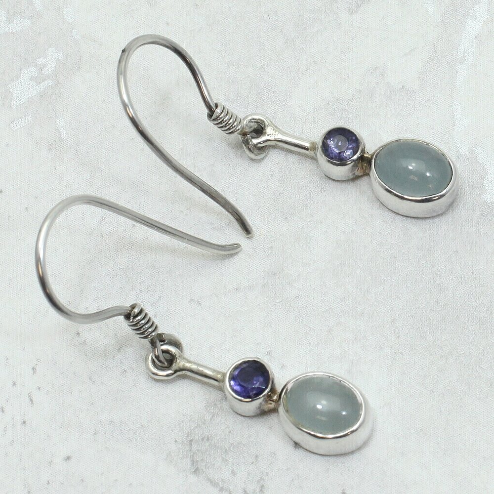 Iolite & chalcedony 925 sterling silver drop earrings.
