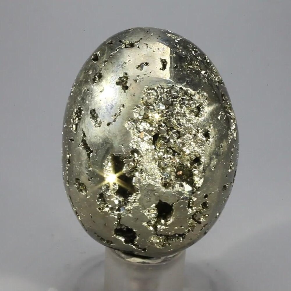 The Huanzala Mine of Peru has produced some of the world's finest pyrites. This Iron Pyrite Egg is a bright and lustrous example, exhibiting a mass of brass-yellow, intergrown pyritohedrons. Ideal for display, gifting or healing.