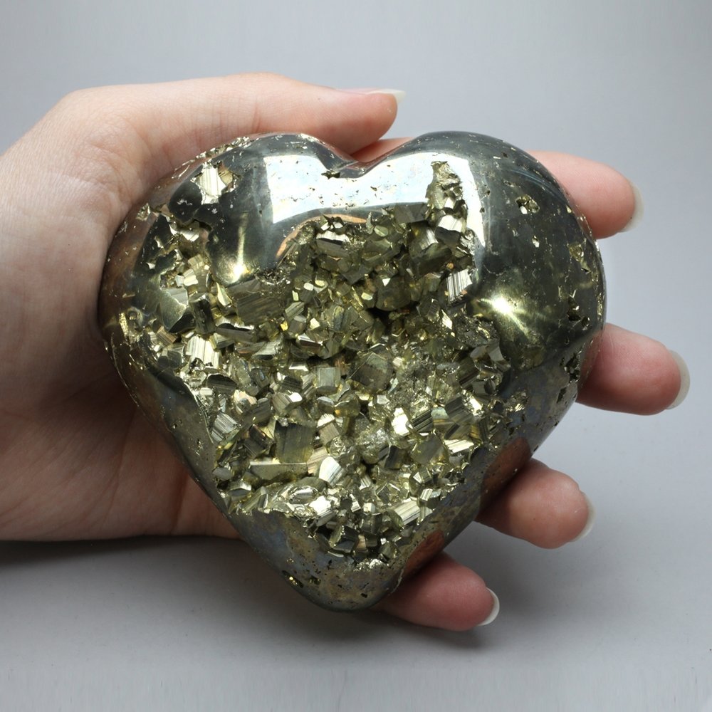 Enjoy the fiery spirit and bright shine of pyrite with this Iron Pyrite Heart. Iron Pyrite is an excellent energy shield and is said to block out negative energy and pollutants at all levels.