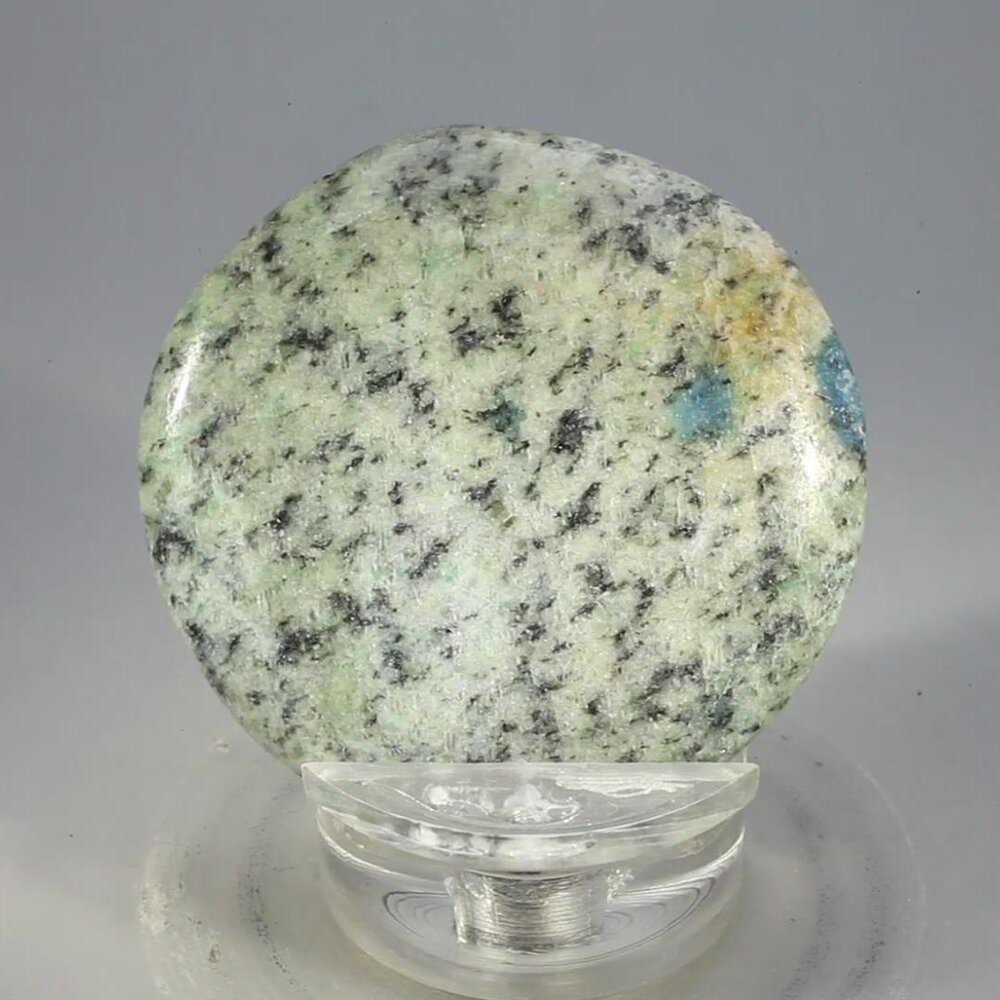 The combination of vivid blue 'spots' in a mottled granite matrix gives this K2 Tumblestone striking visual appeal.  K2 Stone is the name given to a newly discovered stone found in the foothills of the second highest mountain on Earth, K2.