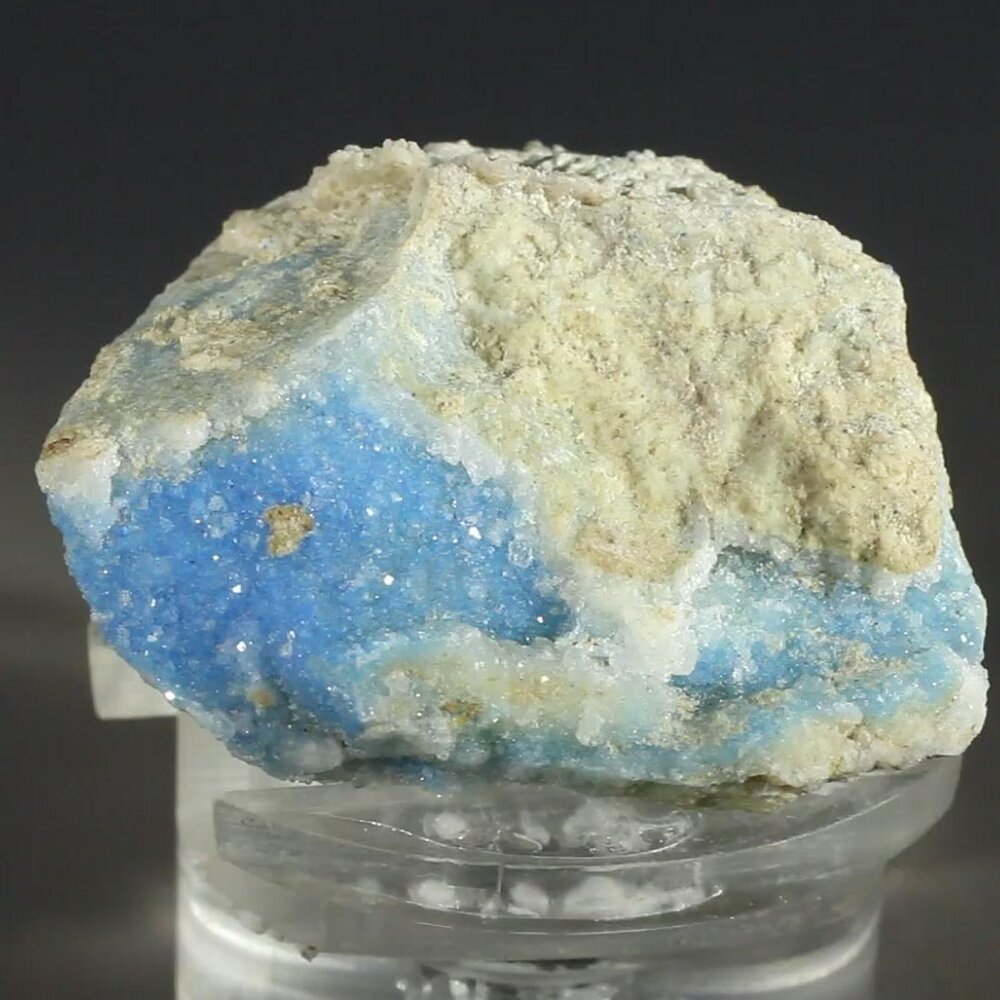 This specimen is from a small batch collected around 60 years ago. The crystals are tiny, coating the matrix as a druze, with a subsequent overgrowth of blocky apophyllite crystals.