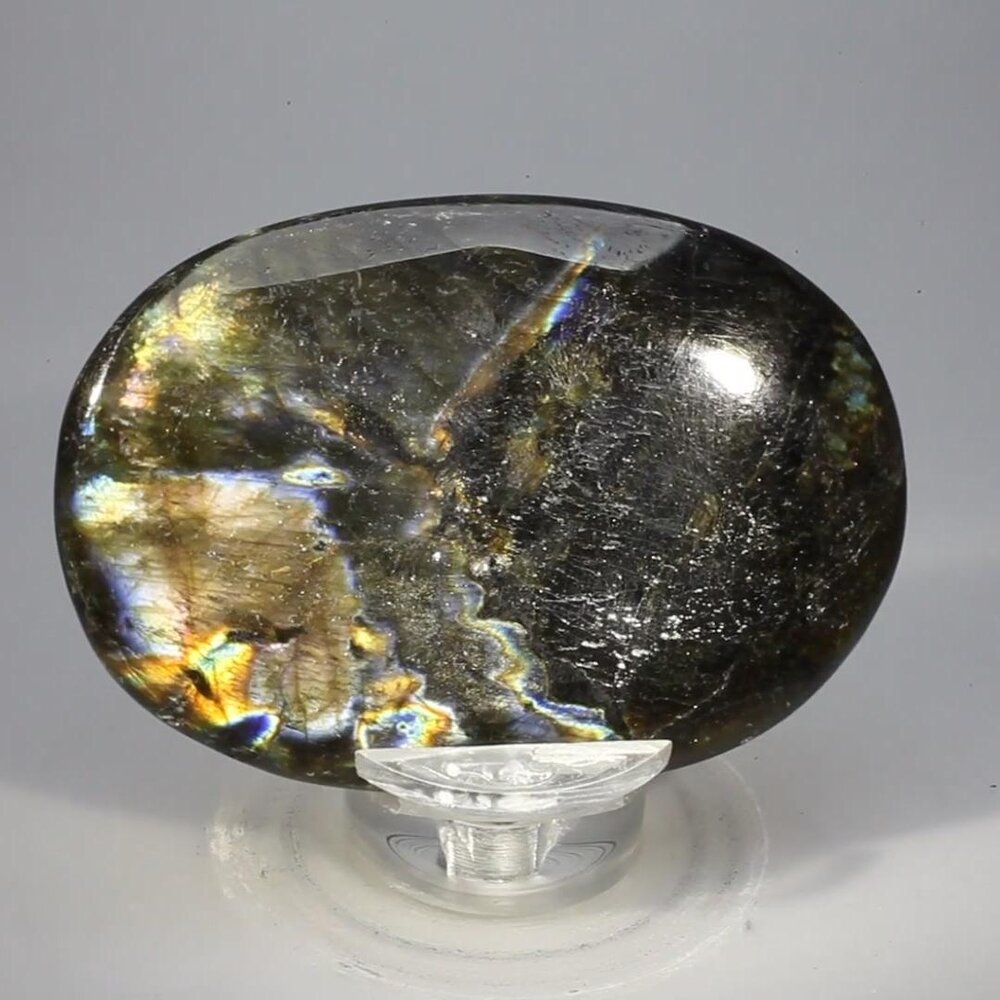 This speciality palm stone is a wonderful way to access the energy labradorite crystal.