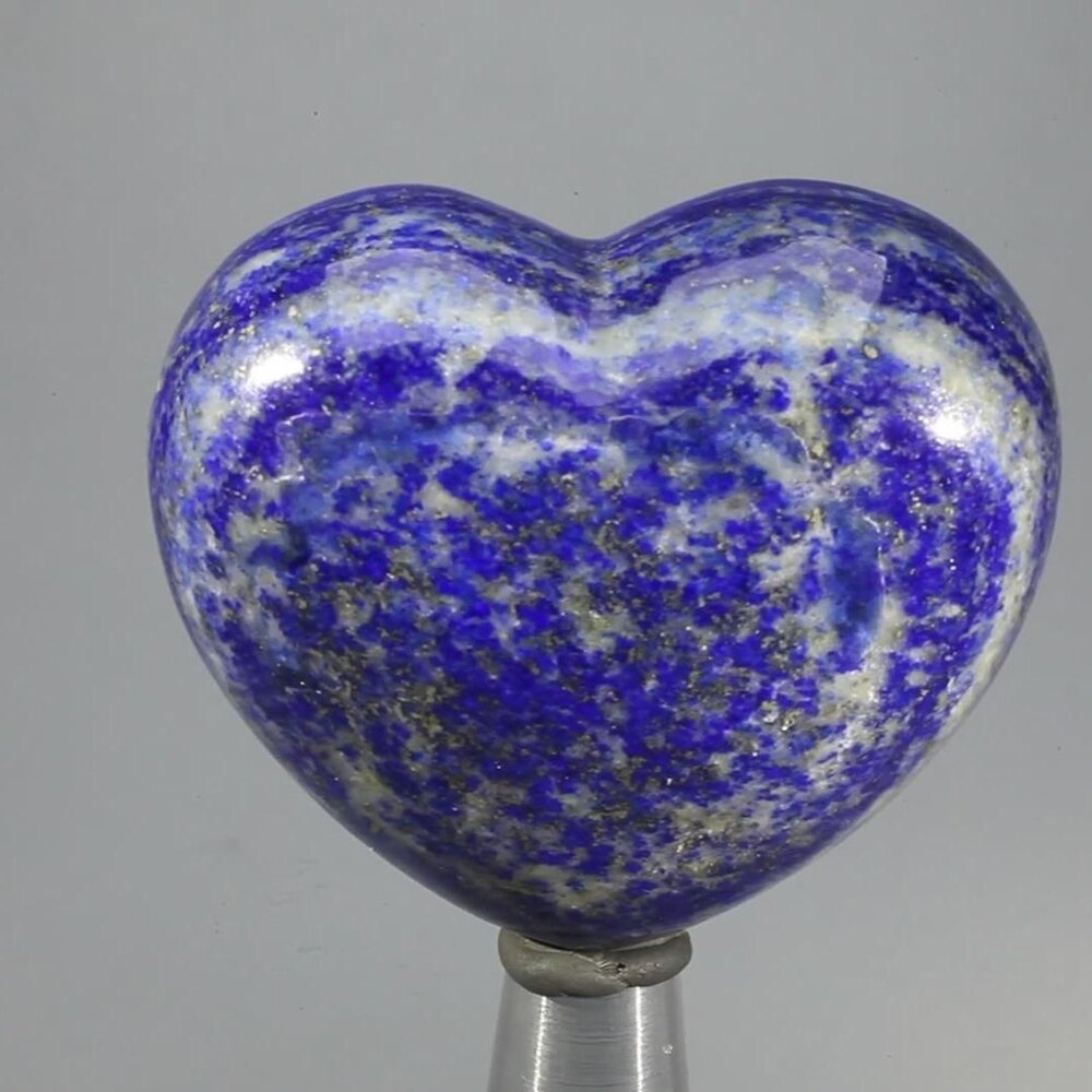 This Lapis Lazuli Crystal Heart has an attractive blue colour with inclusions of golden pyrite and veins of white/grey calcite. The elegant heart shape makes it a fantastic gift for someone you love.