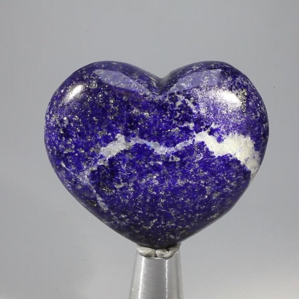 This Lapis Lazuli Crystal Heart has an attractive blue colour with inclusions of golden pyrite and veins of white/grey calcite. The elegant heart shape makes it a fantastic gift for someone you love.