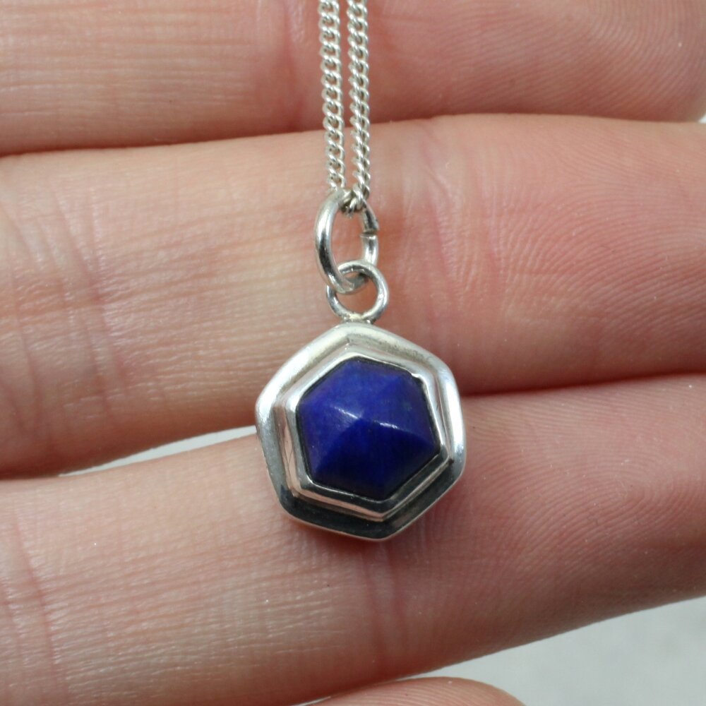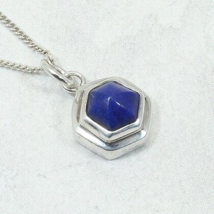 Lapis Lazuli Hexagon 925 Silver Pendant.