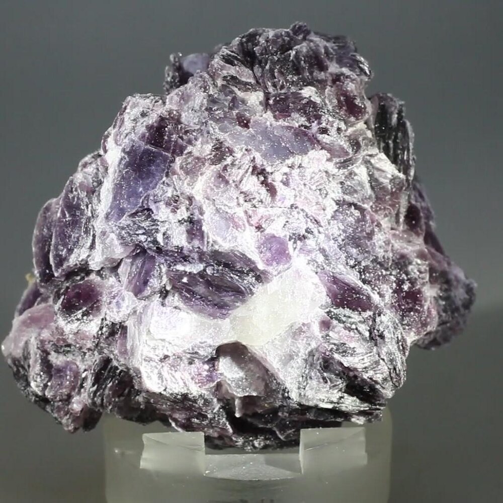 An intensely violet coloured specimen of Lepidolite Mica with hexagonal crystal structure, from Brazil. These examples are gemmy and lustrous.