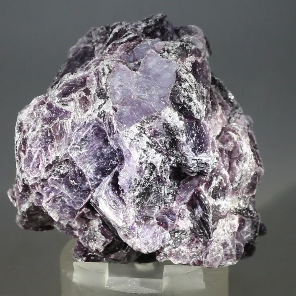 An intensely violet coloured specimen of Lepidolite Mica with hexagonal crystal structure, from Brazil. These examples are gemmy and lustrous.