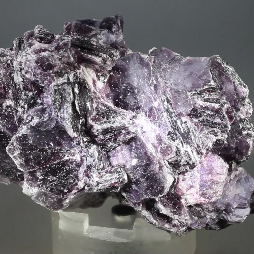 An intensely violet coloured specimen of Lepidolite Mica with hexagonal crystal structure, from Brazil. These examples are gemmy and lustrous.