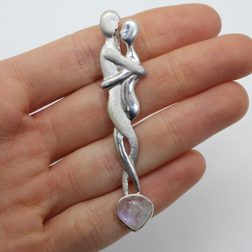 This pendant features a iridescent rainbow moonstone set in a classic silver lover design, symbolising love, unity and our deep connection to the universe.
