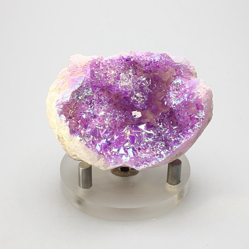 Aura Quartz is created by coating the surface of natural quartz with a layer of various metals. The coatings are extremely thin and create a beautiful iridescent effect by refracting light as it passes through the coating.