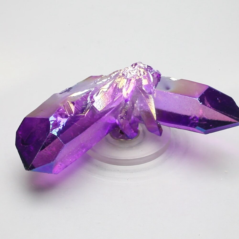 Aura Quartz is created by coating the surface of natural quartz with a layer of various metals. The coatings are extremely thin and create a beautiful iridescent effect by refracting light as it passes through the coating.