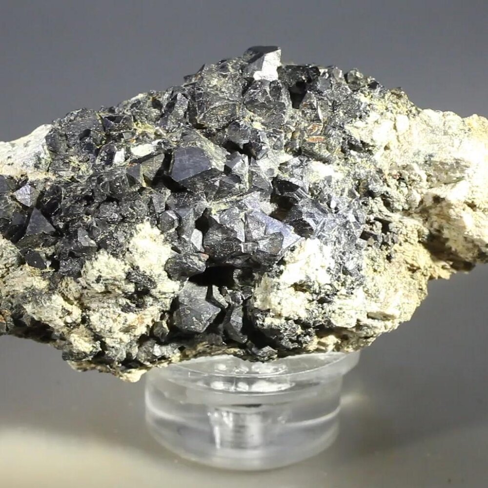 An excellent quality specimen of Magnetite from the world famous deposit of Imilchil, Er Rachidia Province, Morocco. The Magnetite crystals are sharp and shining, with a lustrous metallic grey/black colour.