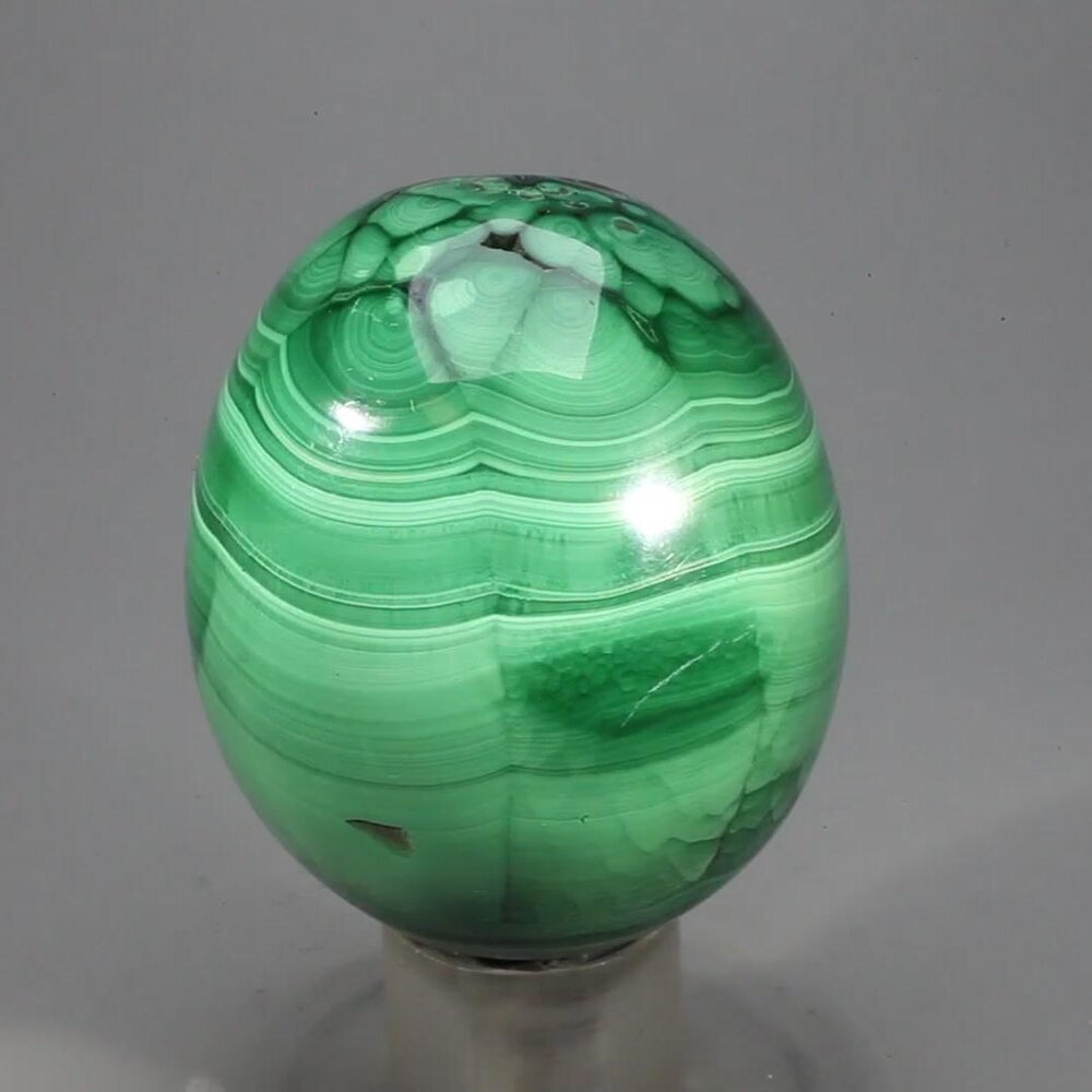 Enjoy beautiful crystal pattern and colour with this fine Malachite Gemstone Crystal Egg. This high quality example has been selected for its particularly striking banding and formation.