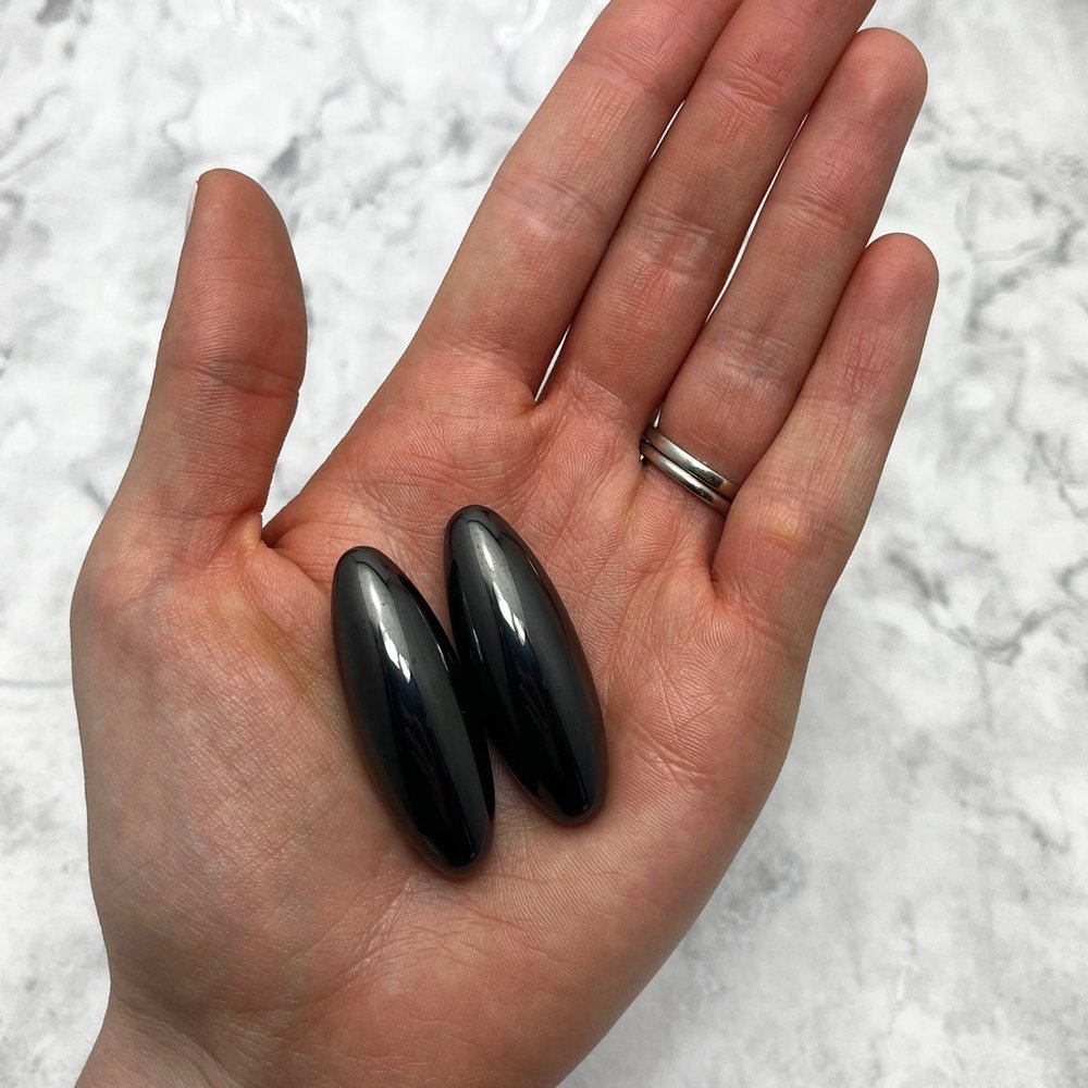 This pair of Hematite Torpedo Shaped Mega Magnets, also known as singing stones, are a great gift for children and adults.