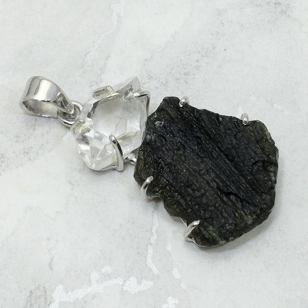 Stone Size: Moldavite 33x22mm and Herkimer Diamond 20x10mm