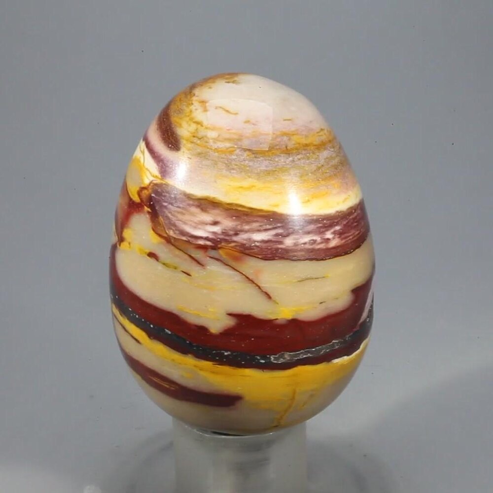 Mookaite is a beautiful variety of Australian jasper believed to have a powerful healing energy. It is said to encourage and balance a thirst for adventure with a sense of inner calm, which maintains the balance between external stimulation and inner processing. This egg is a great way to access the energy of mookaite.