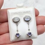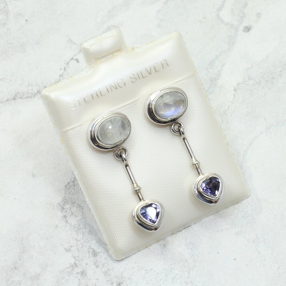Moonstone & Iolite 925 Silver Heart Drop Earrings.