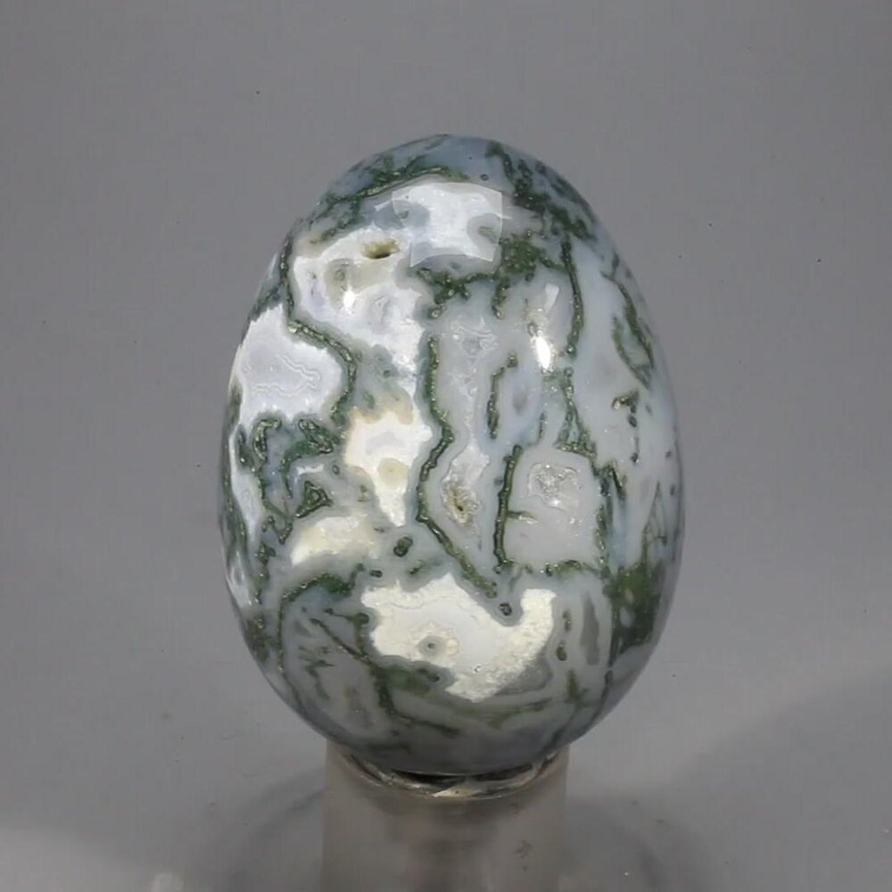 With its rich green colour, this Moss Agate Crystal Egg is a great choice. These crystal eggs have a beautiful colouration with depth of colour. They look wonderful around your home or placed in a bowl. Crystal eggs are also ideal for crystal healing and the perfect shape to hold in your hand.