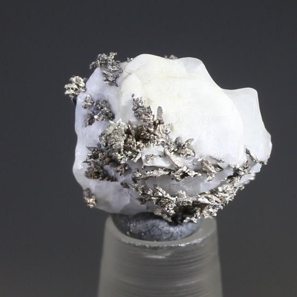 Beautiful micro-crystals of native Silver, in a white calcite matrix, from Zagora Province, Morocco.