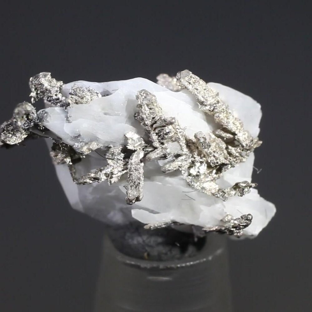 Beautiful micro-crystals of native Silver, in a white calcite matrix, from Zagora Province, Morocco.