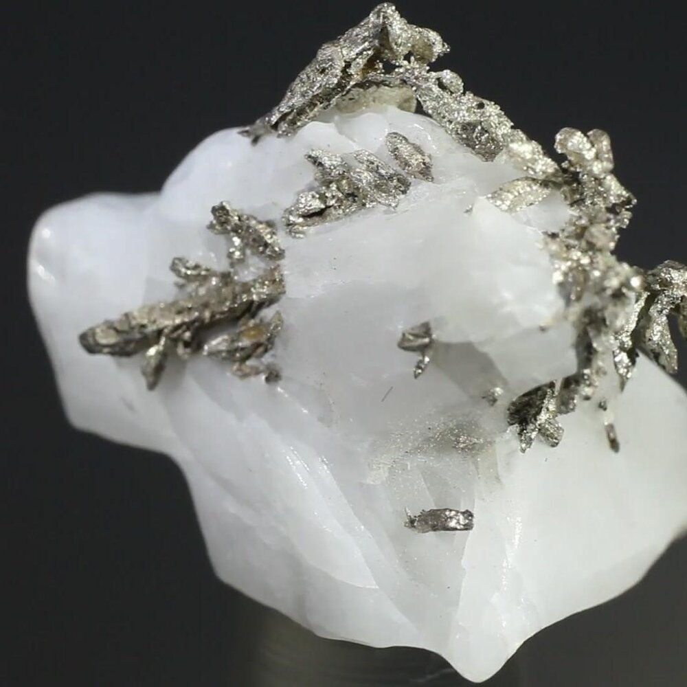 Beautiful micro-crystals of native Silver, in a white calcite matrix, from Zagora Province, Morocco.