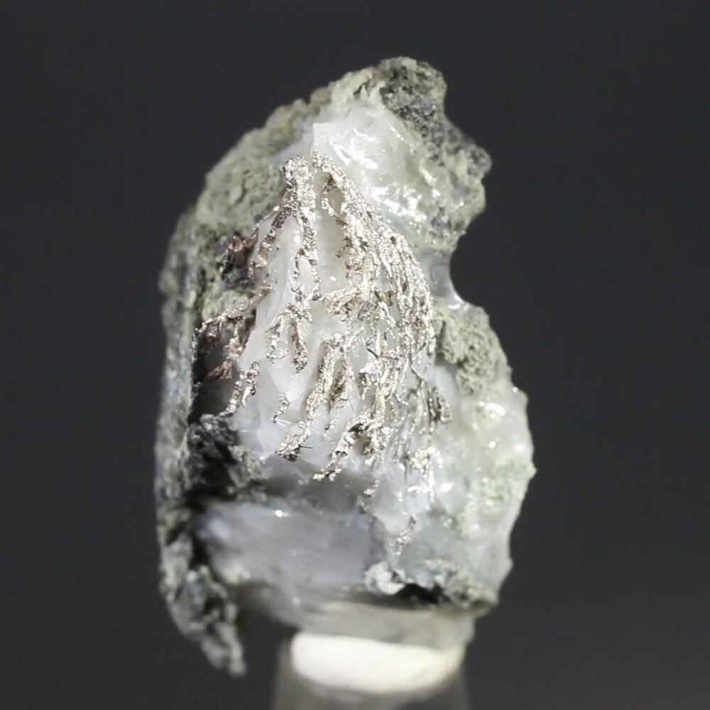 Beautiful micro-crystals of native Silver, in a white calcite matrix, from Zagora Province, Morocco.