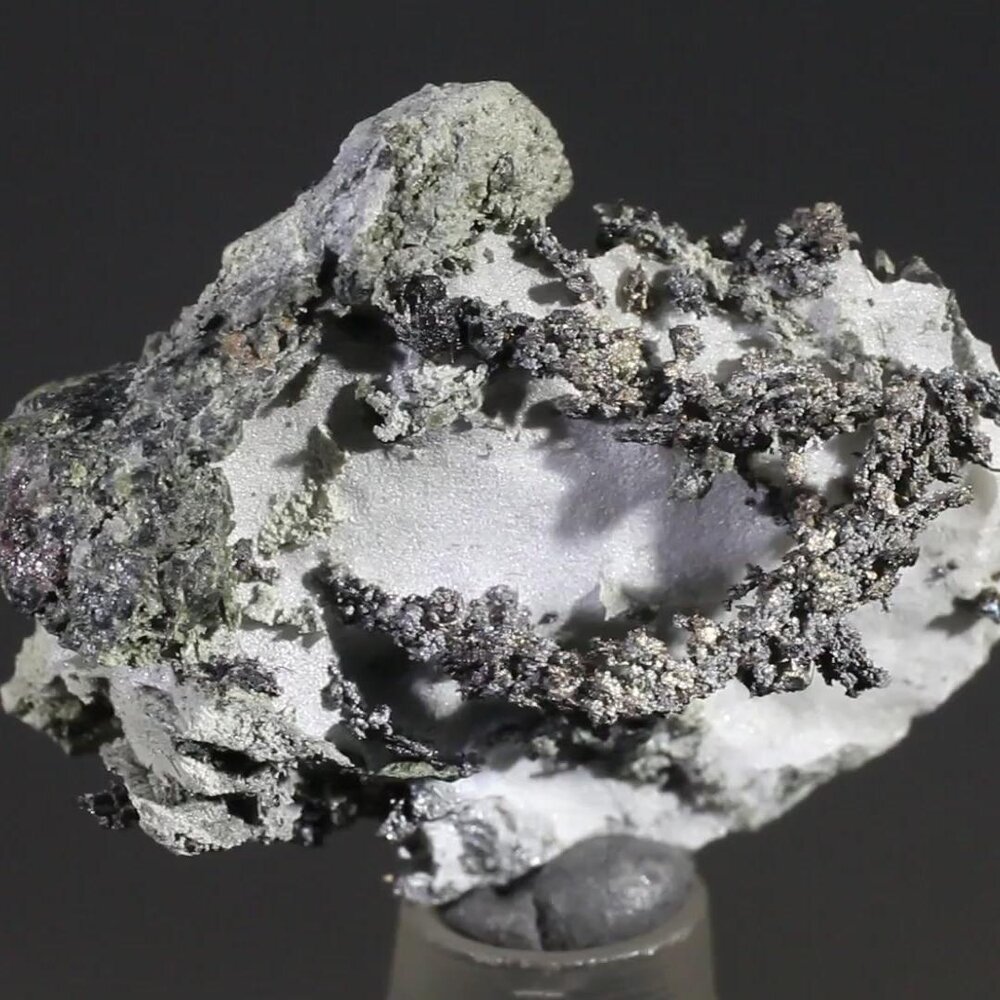 Beautiful micro-crystals of native Silver, in a white calcite matrix, from Zagora Province, Morocco.