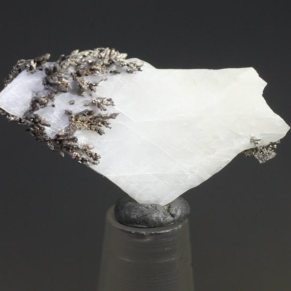 Beautiful micro-crystals of native Silver, in a white calcite matrix, from Zagora Province, Morocco.