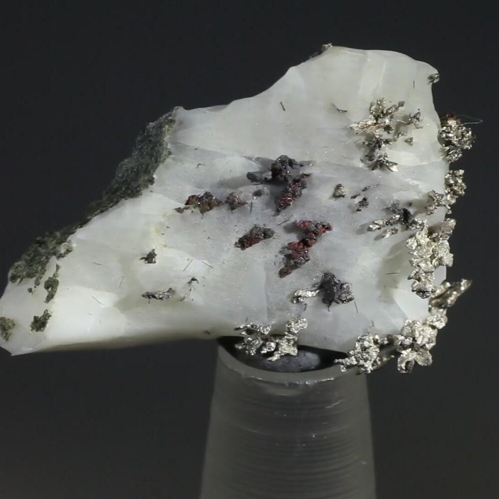 Beautiful micro-crystals of native Silver, in a white calcite matrix, from Zagora Province, Morocco.