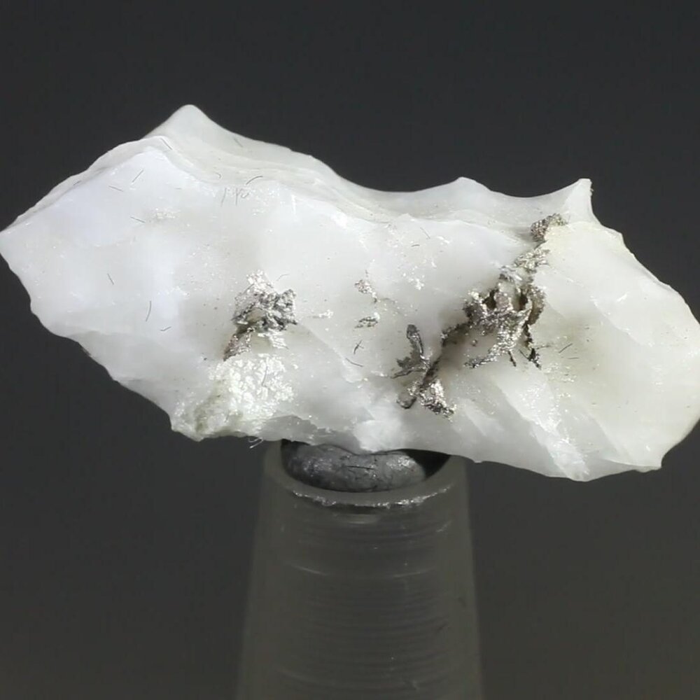 Beautiful micro-crystals of native Silver, in a white calcite matrix, from Zagora Province, Morocco.