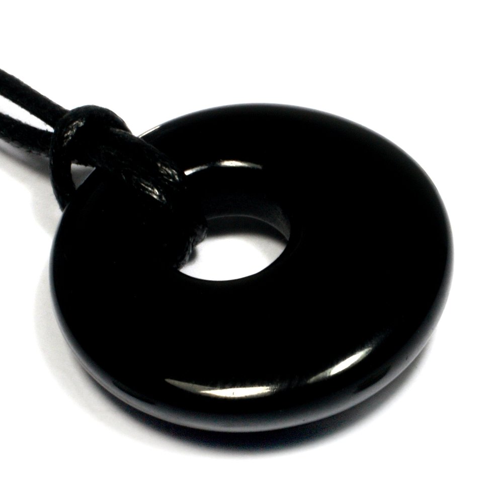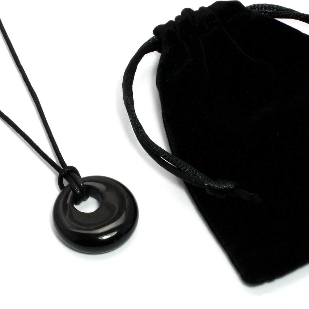 Obsidian Agogo Donut Necklace With Velvet Pouch.