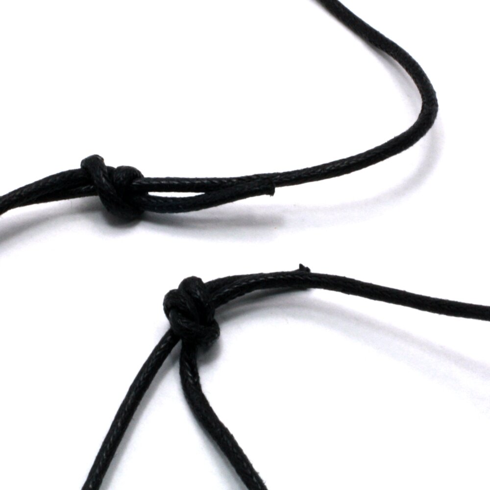 Strung on black waxed-cotton cord with a sliding knot mechanism means this can be adjusted to your desired length.