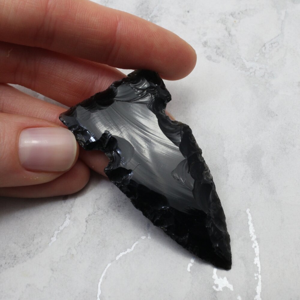 This obsidian arrowhead makes a great grounding stone and is believed to protect against harm.