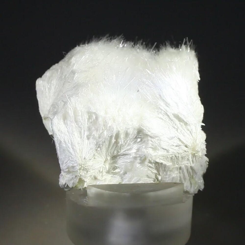 This Okenite Mineral Specimen displays the wonderful texture of this delicate crystal. Okenite features crystals so straight and fine that they look like wool fibres. These form cottony clusters and create a wonderful fluffy texture.