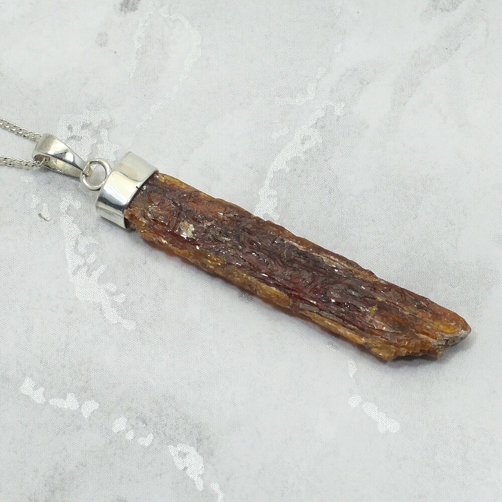 This unique Orange Kyanite Healing Crystal 925 Silver Pendant is set in a 925 sterling silver bail.